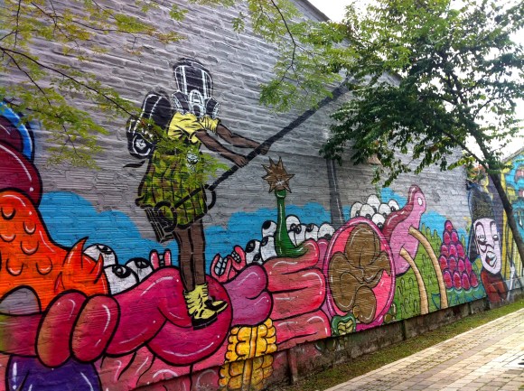 Esta es una muestra de arte urbano que encontré en un viaje reciente que hice a Medellín. A decir verdad, sorprende positivamente la capacidad de la ciudad paisa de convivir e integrar el arte urbano al orden de la ciudad. Sin duda, algo muy distinto a lo que viene sucediendo en Bogotá donde el fenómeno expansivo del grafiti, sin ningún control institucional o social, en términos generales, pareciera que se devora la ciudad. Entonces, mientras que en Medellín el fenómeno difícilmente se percibe como un problema, en Bogotá, desafortunadamente, se interpreta fácilmente cómo sintomático de su deterioro generalizado. Estas fotos se toman de un muro justo al frente del Museo de Arte Moderno de Medellín. Una interesante iniciativa institucional.