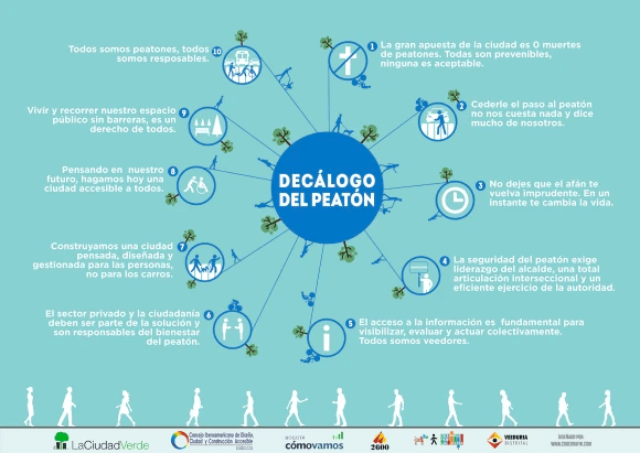 En el 2015, en un ejercicio colectivo junto con La Ciudad Verde, Combo 2600, CIDCCA, Veeduría Distrital, Bogotá Cómo Vamos y Cebras por la Vida construimos el Decálogo del Peatón; 10 principios para darle al peatón el lugar prioritario que se merece en la ciudad. Desde aquel entonces, insistimos en la importancia de adoptar principios de Visión 0 para nuestras ciudades.